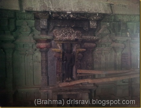 Chandikeshwarar and Durga on the right wall of the main sannidhi.Brahma is seen in the far corner